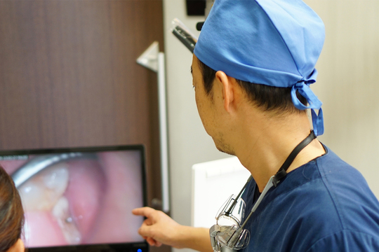 そのため当院では、症例に合わせてインプラント治療にマイクロスコープ(歯科用顕微鏡)を使用することがあります。マイクロスコープを利用することで、患部を拡大して確認できるため、より正確で精密な手術が可能です。